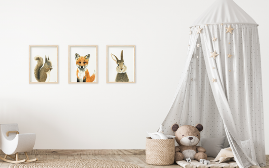 Set of 3: squirrel, fox and rabbit prints