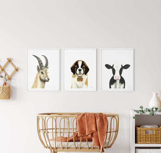 Set of 3: ibex, saint bernard and cow prints